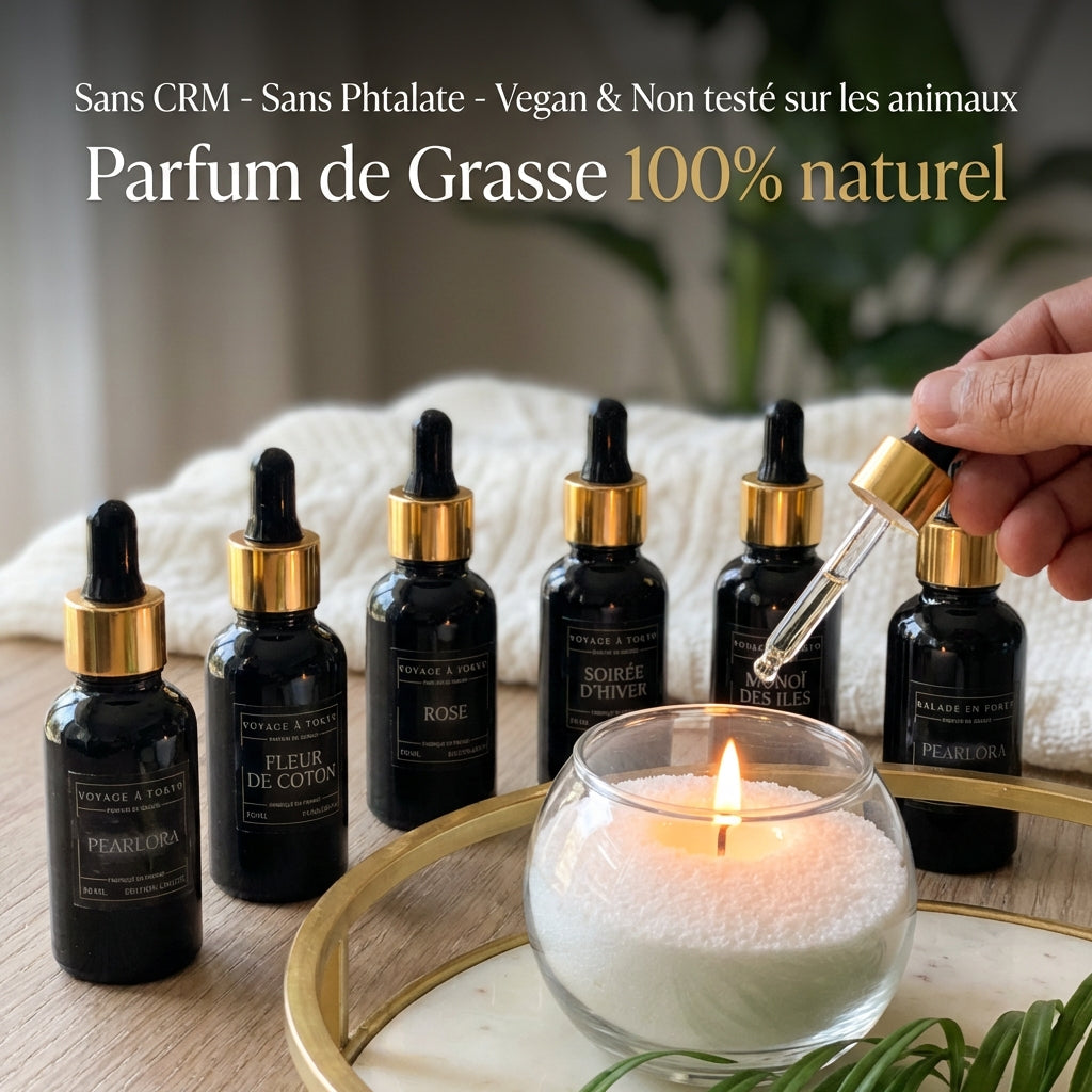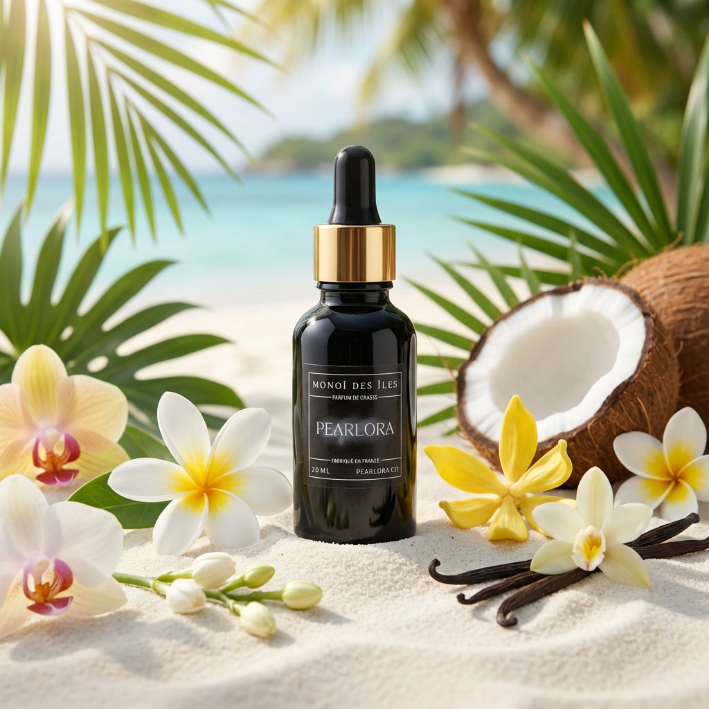 Geben Sie ein paar Tropfen Monoï des Îles zu Ihren Pearlora-Kerzen, um Ihren Raum mit diesem sonnigen und beruhigenden Duft zu erfüllen.