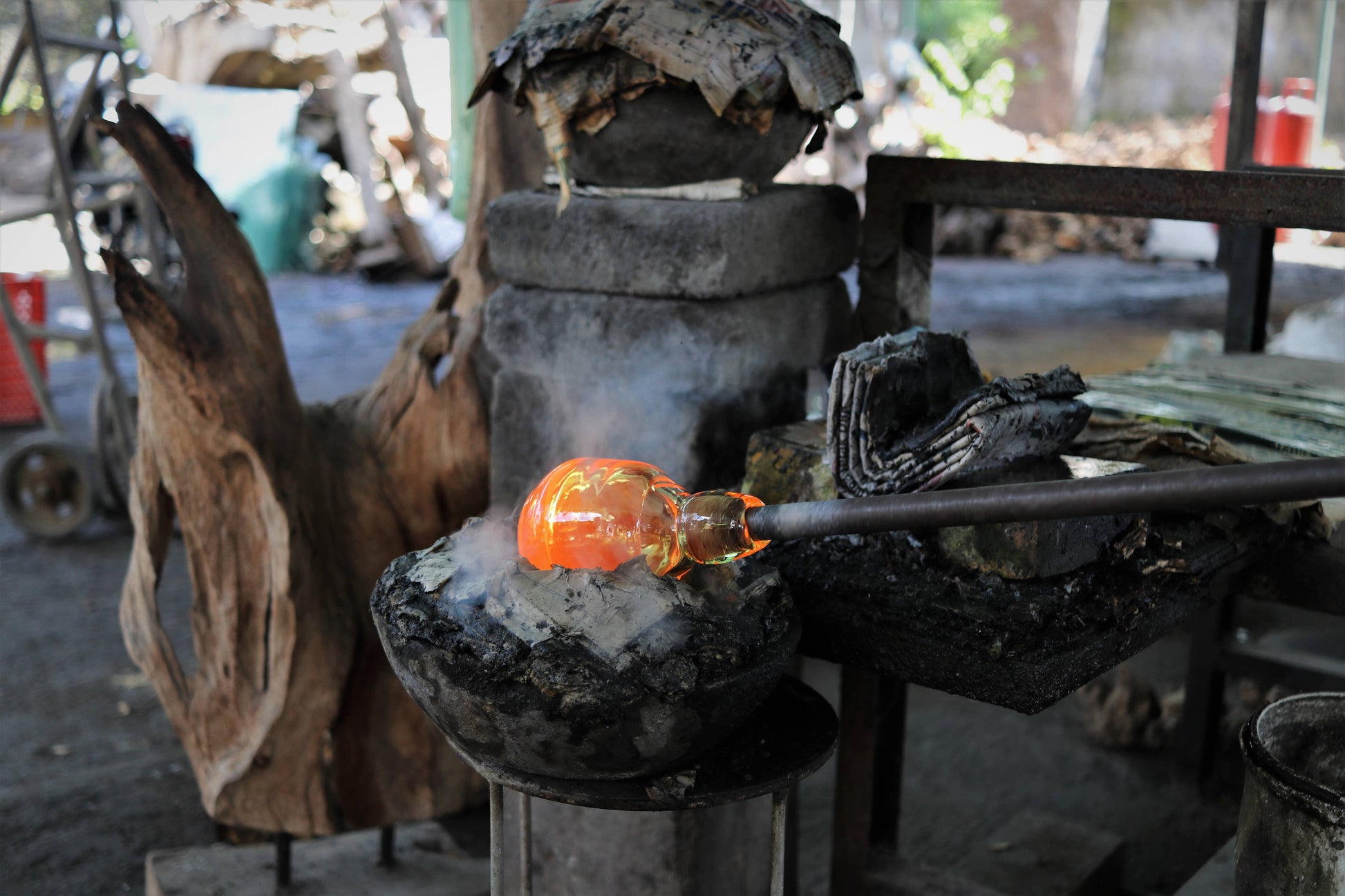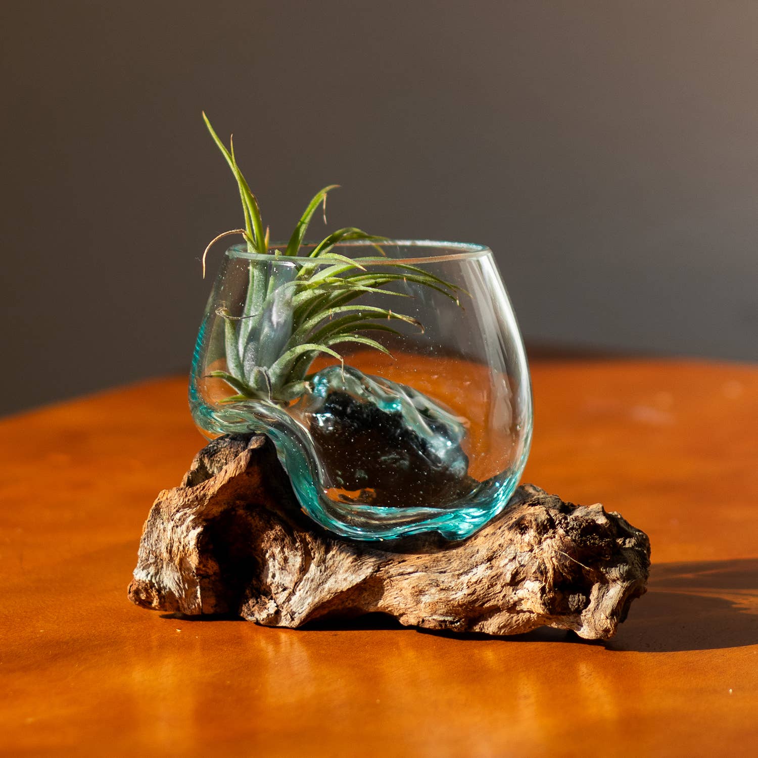 Alliez nature et élégance avec le Racine de Lumière, un récipient unique façonné à la main à partir de verre recyclé fondu sur bois de Gamal.